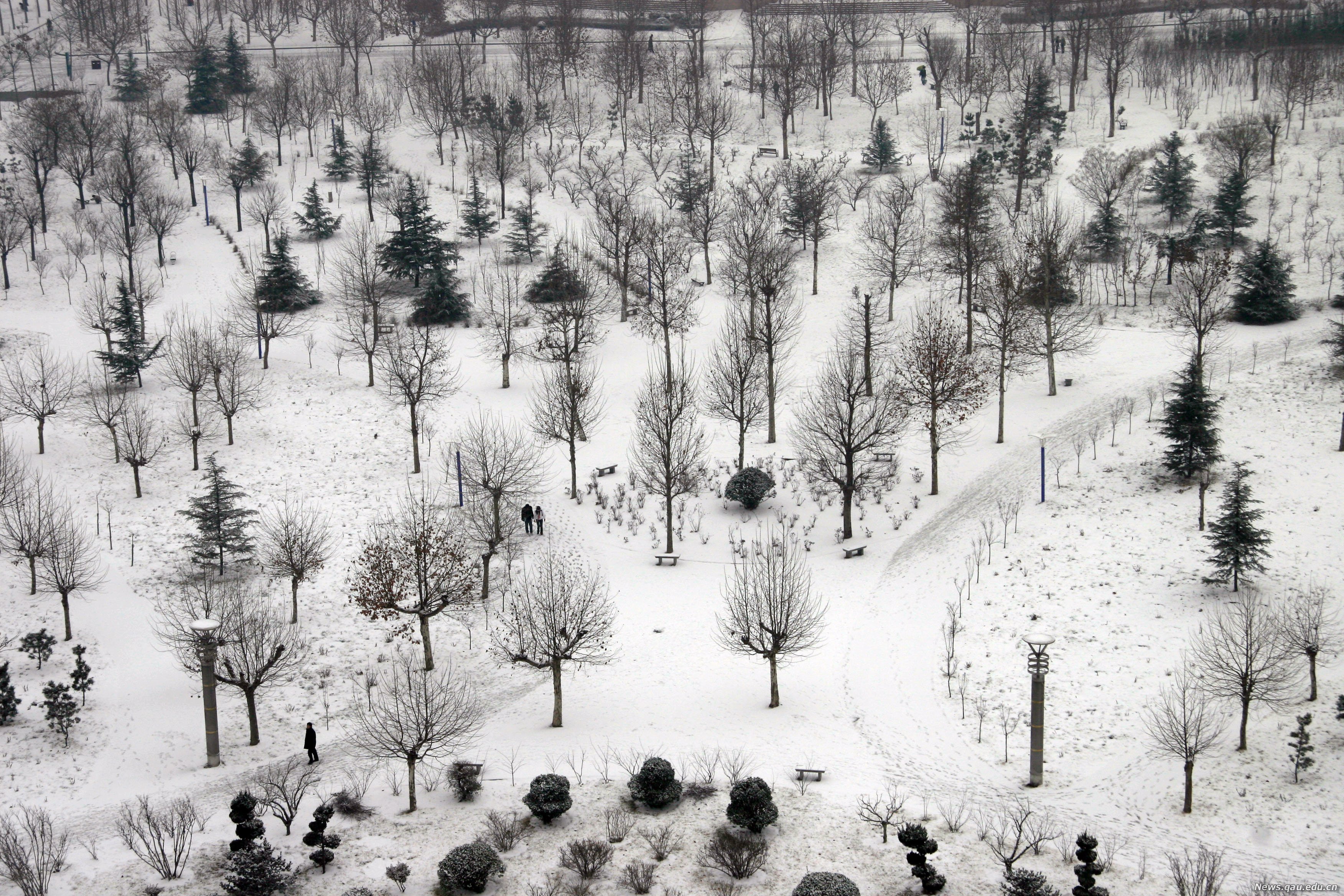 积雪覆盖了校园里的“鼎盛花园”